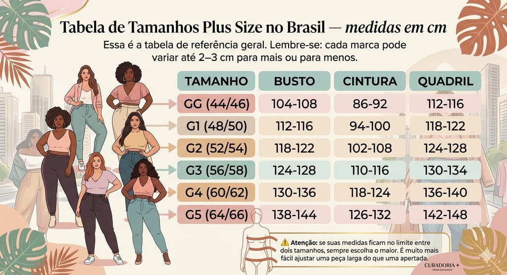 Tabela de Tamanhos Plus Size no Brasil 2026: Do GG ao G5 com Medidas em CM